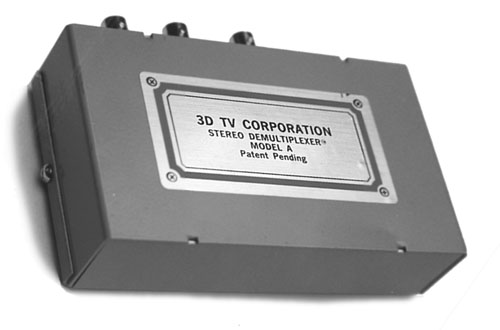 Model A StereoDemultiplexer™ - Seperates field sequential video into right and left eye outputs permitting the use of a single tape or disk with dual video projectors for polarized glasses or with dual LCD's in a head mounted display.